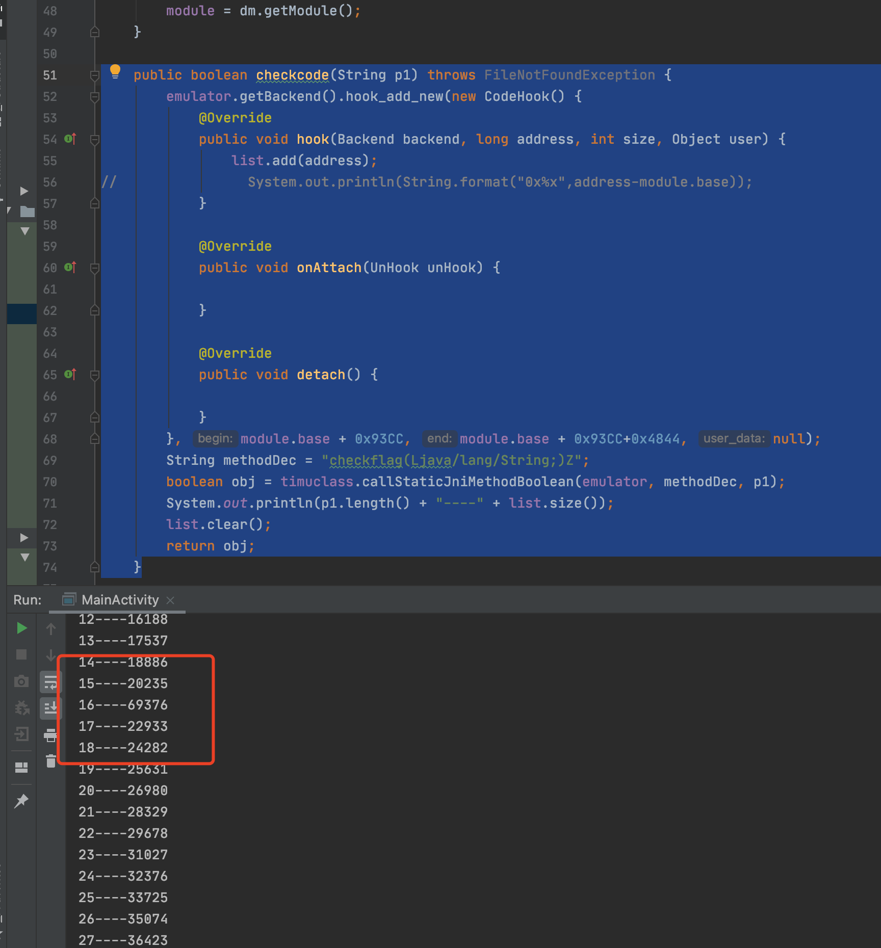 只需要记录下执行的汇编指令数量,就可以根据执行数量来判断flag的长度。这里用unicorn的方式hook记录,